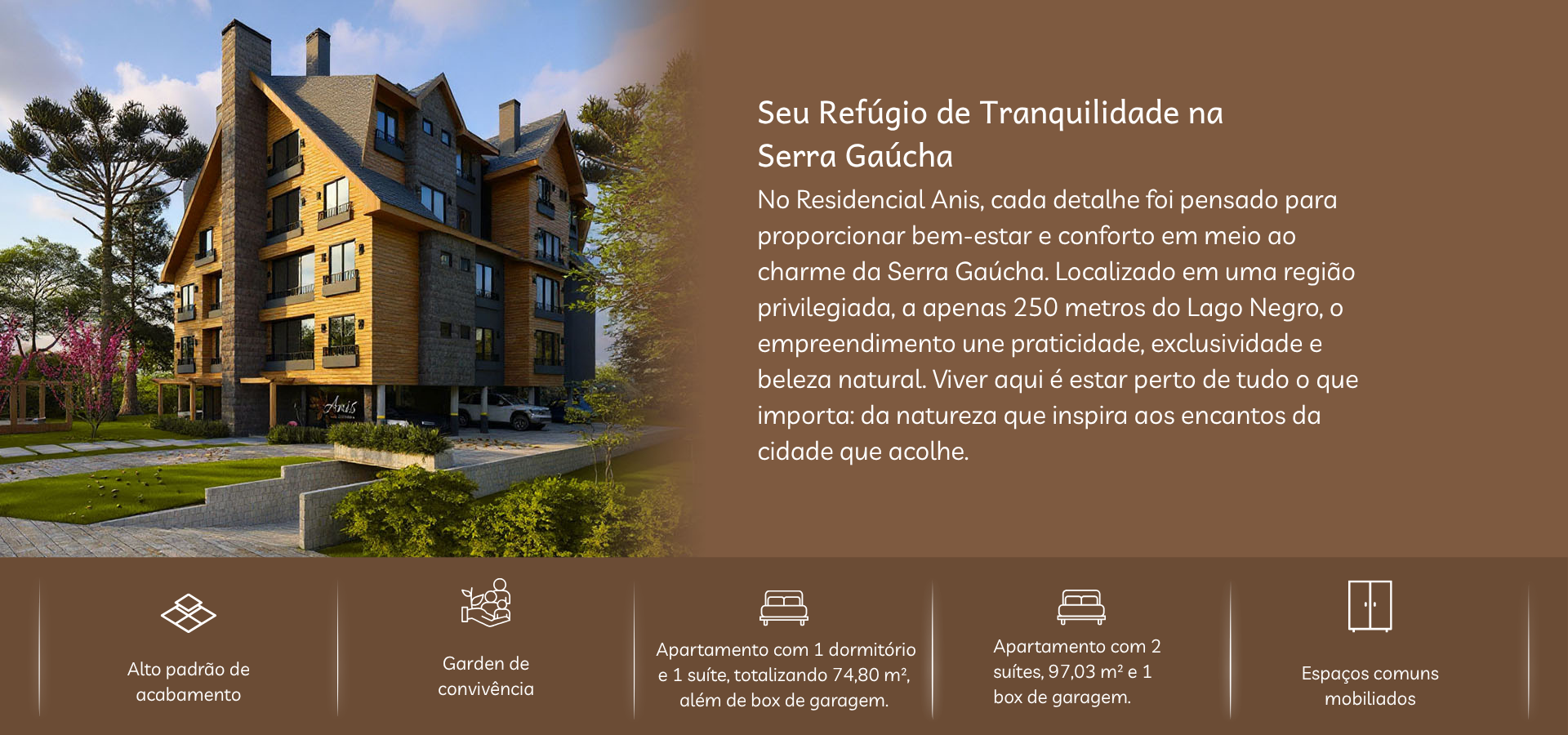 Um endereço que une o charme de Gramado, o conforto do alto padrão e a tranquilidade de estar cercado pela natureza.